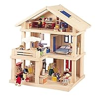 Plan Toy Terrace Doll House - Original Set is the first version of the ever popular Terrace Dollhouse. I has three stories, and moveable windows, doors and walls. The moveable pieces allow a child to redesign the house into many different configurations. The open sided house is accessible from all sides so several children can play with the house at the same time. The house is made of recycled, natural rubber wood. Designed and made in Thailand. Price is for doll house only, furniture and accessories are sold separately. Ages 3 & up.