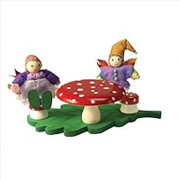 With this set, you get the little leaf 'rug' piece, the mushroom table, and 2 mushroom stools. No dolls. The pieces are adorable and very well made. For creative play potential, this set is top notch. For functional play, not so much. The mushroom table is top-heavy and tips over easily, and while the fairy dolls (sold separately) are fully positionable, they absolutely will not stay sitting on these little mushroom stools. This is why I give the set 4 stars and not 5. If the table had a wider base and the stools had wider seats, they would be perfect.