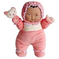 Birth & up. Cuddly and soft, this baby safe 12" soft body doll helps develop motor skills and eye-hand coordination. Doll has an animal shaped rattle in one hand and a crackle sound in the other to stimulate the senses of sight, hearing and touch. Clothing fabric may vary. Surface washable.