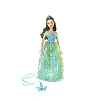 She shines as brightly as her glimmering tiara and flowing dress. Beautiful princess Barbie doll is dressed in a glamorous royal gown and tiara, with a tiara gift necklace just for girls. Doll measures 12".