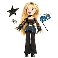 Includes Bratz Midnight Dance Meygan Doll, fashion top, fashion bottom, pair of shoes, hand bag, pair of earrings, choker, makeup powder, blush compact, makeup brush, nail polish, collectible cape and mask. Measures 10" tall.