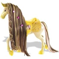 Just as beautiful as their princess counterparts, these royally gorgeous horses feature luxurious manes and flowing tails. Each pony wears a saddle that dazzles with "gems" and comes with pretend jewels used to decorate their manes. Girls can wear the jewels in their hair, too! Horse measures approximately 10" tall.
