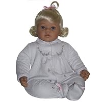 This beautiful, blue-eyed, soft vinyl baby doll features a true-to-life expression and the soft, delicate appearance of a real baby's skin--including baby soft scent. Addison's white cotton Sleeper features delicately embroidered pink and green flowers and snaps in front for easy changing. Outfit includes matching scrunchie and pink checkered trim bib removes easily with one snap.